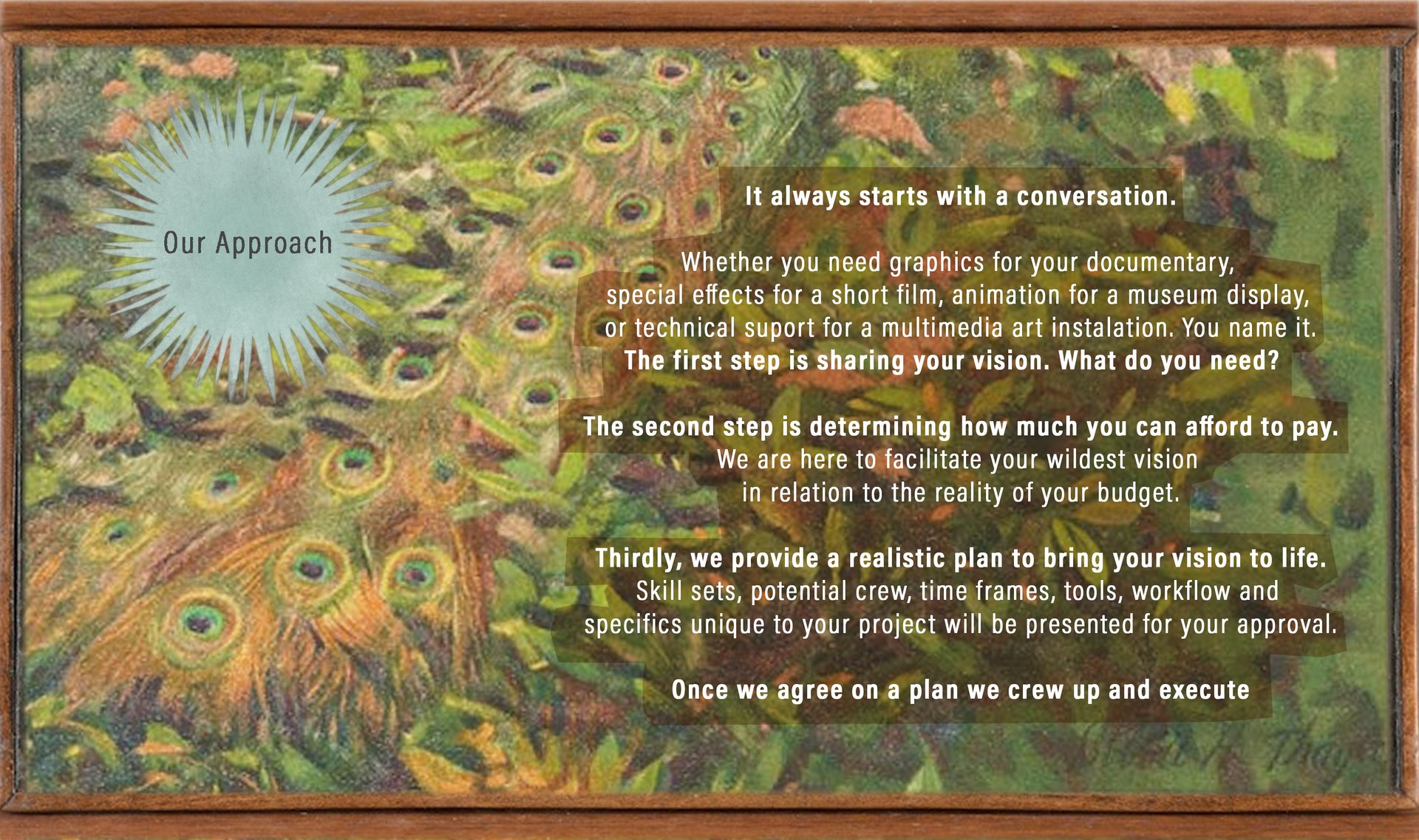 We are here to facilitate your wildest vision in relation to the reality of your budget.